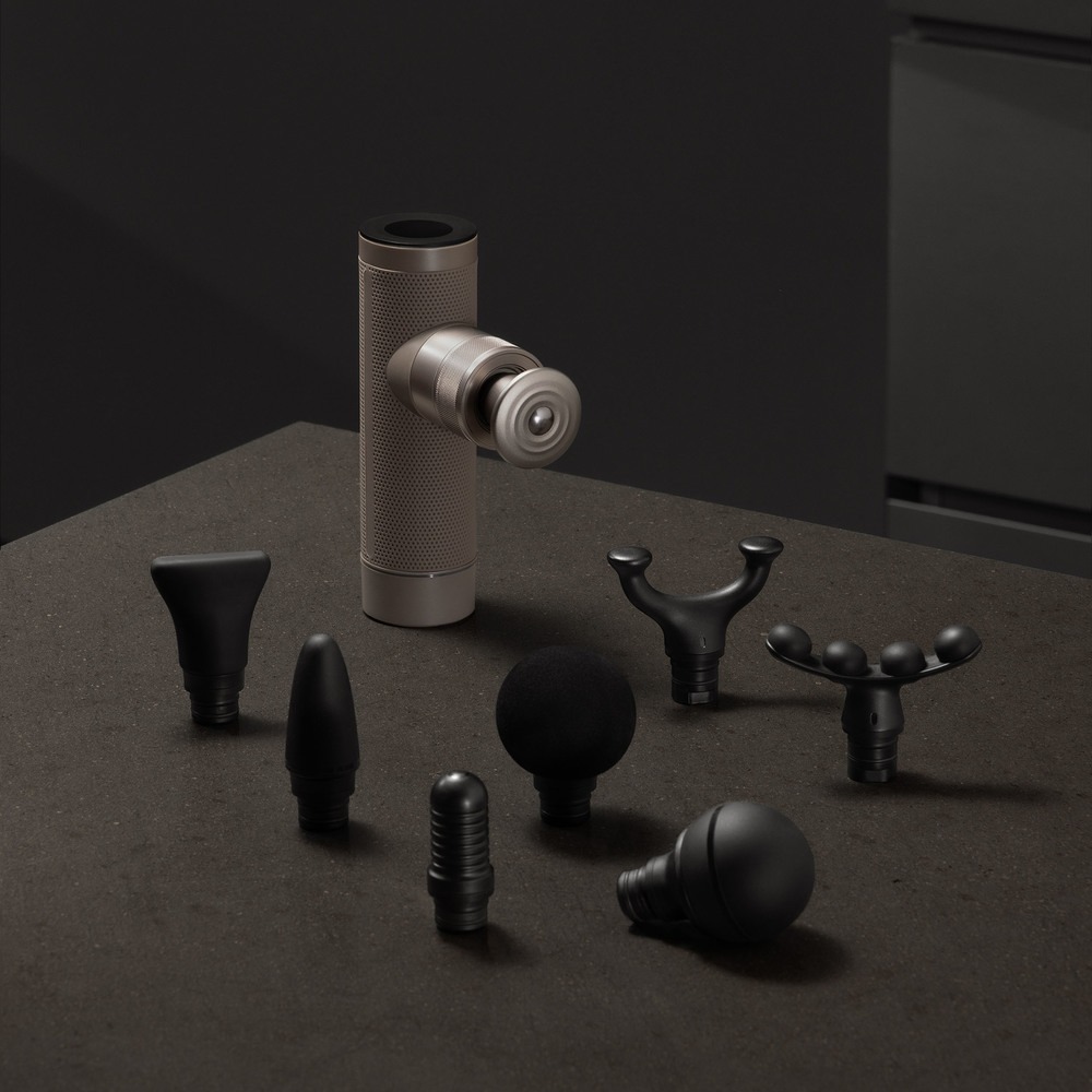 8 насадок: для плотных мышц, для триггерных точек, для стоп и кистей, для средних групп мышц, для мышц спины, для рук и бедер, для чувствительных частей тела, для всего тела