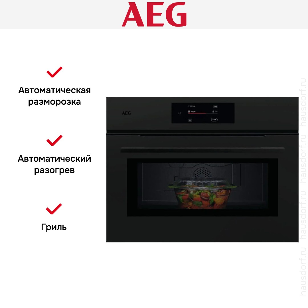 Количество режимов в данной модели АЕГ: 8 шт. Для обработки продуктов и готовых блюд используются следующие виды нагрева: Микроволны, Гриль, Микроволны + гриль. Выберите гриль, чтобы получить поджаристую корочку на мясе или рыбе. Тип гриля в этой микроволновке кварцевый. Если вы спешите, а еду нужно разогреть, используйте быстрый старт — благодаря ему 30 секунд прибор работает на полной мощности. Отдельная опция для размораживания продуктов и полуфабрикатов облегчает жизнь — не нужно самостоятельно настраивать параметры. Автоматические программы для приготовления добавлены производителем также для упрощения работы.