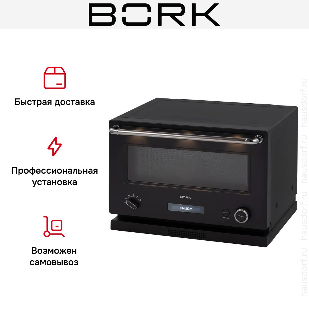 Отдельностоящая микроволновая печь BORK W750 bk — компактное и полезное дополнение к уже имеющейся кухонной технике. Ее можно установить на шкаф, на свободную столешницу, но не рекомендуется ставить на другие приборы, например, холодильник. Цвет этой модели: черный.