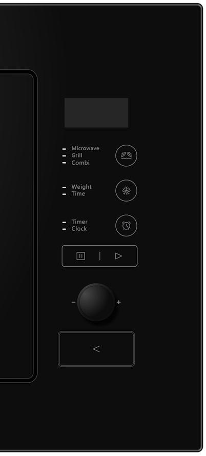 По типу управления микроволновые печи делятся на механические, электромеханические и электронные. Панель управлния у отдельно стоящих и у встраиваемых моделей с навесной дверцей располагается обычно в правой части корпуса, а у встраиваемых устройств с откидной дверцей — в верхней части. При помощи элементов панели управления пользователь может задавать основные параметры работы: уровень мощности микроволн, время приготовления, режим работы, автоматическую программу, а также дополнительные опции — например, включение гриля.
