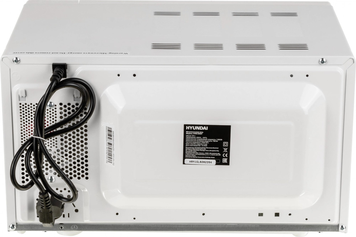 Отдельностоящая микроволновая печь Hyundai HYM-D3027 — компактное и полезное дополнение к уже имеющейся кухонной технике. Ее можно установить на шкаф, на свободную столешницу, но не рекомендуется ставить на другие приборы, например, холодильник. Цвет этой модели: белый.