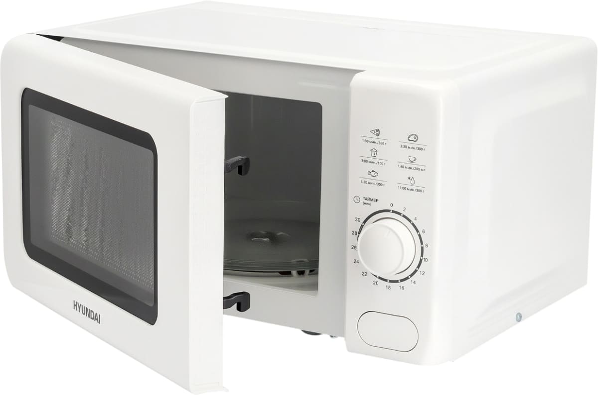 Количество режимов в данной модели Хендай: 2 шт. Для обработки продуктов и готовых блюд используются следующие виды нагрева: Микроволны. Отдельная опция для размораживания продуктов и полуфабрикатов облегчает жизнь — не нужно самостоятельно настраивать параметры.
