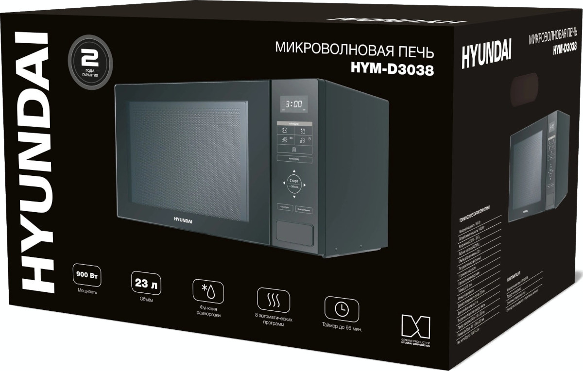 Отдельностоящая микроволновая печь Hyundai HYM-D3038 — компактное и полезное дополнение к уже имеющейся кухонной технике. Ее можно установить на шкаф, на свободную столешницу, но не рекомендуется ставить на другие приборы, например, холодильник. Цвет этой модели: черный.