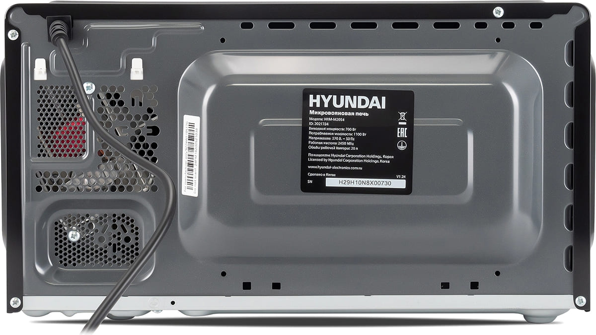 Количество режимов в данной модели Хендай: 6 шт. Для обработки продуктов и готовых блюд используются следующие виды нагрева: Микроволны. Отдельная опция для размораживания продуктов и полуфабрикатов облегчает жизнь — не нужно самостоятельно настраивать параметры.