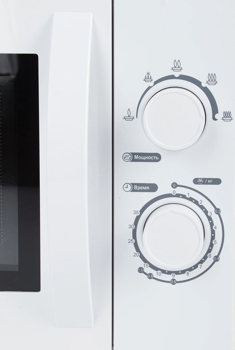 Материал внутренней поверхности — эмаль легкой очистки. Полезный объем для готовки — 20 л. Для установки и прогрева посуды используется классическое вращающееся блюдо. Стандартное механическое управление не вызовет трудностей ни у кого из вашей семьи. Для изменения настроек или выбора программ используются следующие переключатели: поворотные.