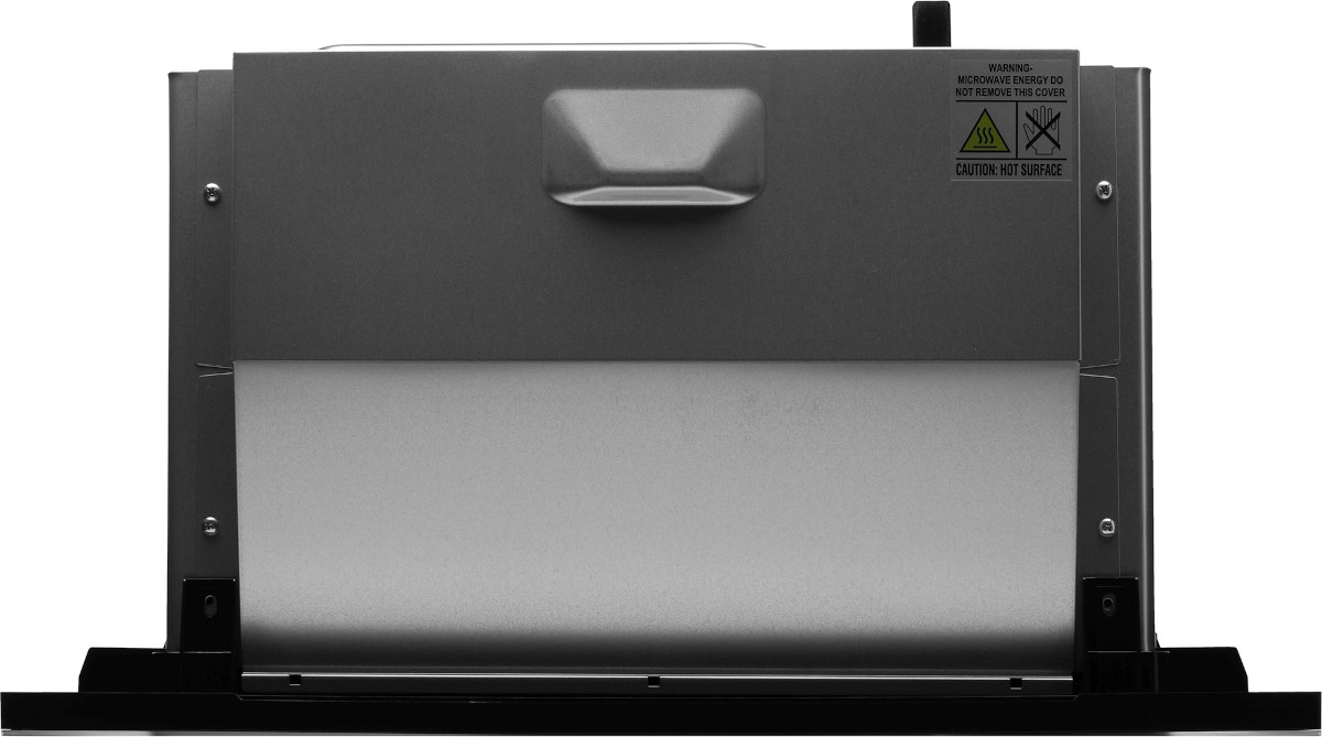Модели с откидной дверцей и верхней или нижней панелью управления — как правило, встраиваемые, с камерой большого объема и увеличенным набором возможностей. Некоторые модели снабжены ручками, другие открываются нажатием на фронтальную часть. Они могут устанавливаться в шкаф или колонну с другой бытовой техникой, однако высоту установки следует выбирать, исходя из роста пользователя. Откидывающаяся дверца может заслонять обзор, если СВЧ-печь установлена слишком высоко.
