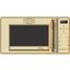 Более интересны цветовые решения для многофункциональных встраиваемых микроволновых печей. Эти приборы отличаются не только большей вместимостью, достаточно высокой ценой и широким набором возможностей, но и обширным выбором дизайнерских решений, а значит — и разнообразной по цвету фурнитурой. К ней можно отнести рукоятки поворотных переключателей, ручки-рейлинги у откидных дверей, элементы отделки. Кроме уже перечисленных оттенков, встроенные микроволновки могут оснащаться фурнитурой красного, золотого, серого цветов, а также оттенков меди и состаренного серебра.