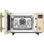 Материал внутренней поверхности — нержавеющая сталь. Благодаря ей хорошо аккумулируется и поддерживается тепло, прибор долго служит без повреждений. Полезный объем для готовки — 23 л. Для установки и прогрева посуды используется классическое вращающееся блюдо. В комплекте также есть решетка, с помощью которой можно разнообразить привычное меню. Понятное электронное управление не вызовет трудностей ни у кого из вашей семьи. Для изменения настроек или выбора программ используются следующие переключатели: сенсорные + поворотные.