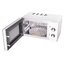 Микроволновые печи могут иметь навесную или откидную дверцу. Модели с навесной дверцей, запирающейся на механические защелки, могут быть как встраиваемыми, так и отдельно стоящими. Такие СВЧ-печи с дверцей, открывающейся влево или вправо, могут относиться к любой категории цен: от самых простых и дешевых до премиальных моделей. Недостатки дверцы с петлями сбоку — выступающая ручка, которая затрудняет очистку фасада, и небольшой угол открытия не более 90 градусов, который может препятствовать, например, размещению прибора в углу. Если ручка действительно мешает, стоит выбрать модель, дверца которой открывается нажатием на кнопку или прикосновением к сенсору на боковой панели управления.