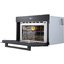 Материал внутренней поверхности — нержавеющая сталь. Благодаря ей хорошо аккумулируется и поддерживается тепло, прибор долго служит без повреждений. Полезный объем для готовки — 34 л. Для установки и прогрева посуды используется классическое вращающееся блюдо. В комплекте также есть решетка, с помощью которой можно разнообразить привычное меню. Понятное электронное управление не вызовет трудностей ни у кого из вашей семьи. Для изменения настроек или выбора программ используются следующие переключатели: сенсорные.