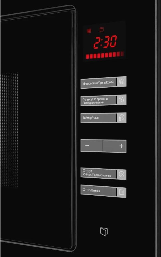 По способу получения изображения можно выделить модели с LED или LCD-дисплеями. Чаще всего СВЧ-печи оснащаются светодиодными дисплеями различных цветов — например, белого или красного. Больше возможностей предлагает TFT-дисплей с активной матрицей. Пользователь задает те или иные опции при помощи меню — например, выбирает режим размораживания по времени или по весу. Текстовыми сенсорными дисплеями оснащаются СВЧ-печи премиум-класса. Такие дисплеи из нескольких сегментов позволяют получить информацию об оставшемся времени, этапе выполнения программы при комбинированном режиме, отсрочке старта, текущем времени и дате.