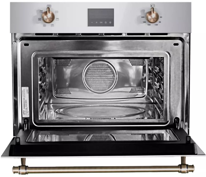 Нержавеющая сталь — быстро нагревается и хорошо переносит высокие температуры, поэтому ее используют в микроволновках с конвекцией.
