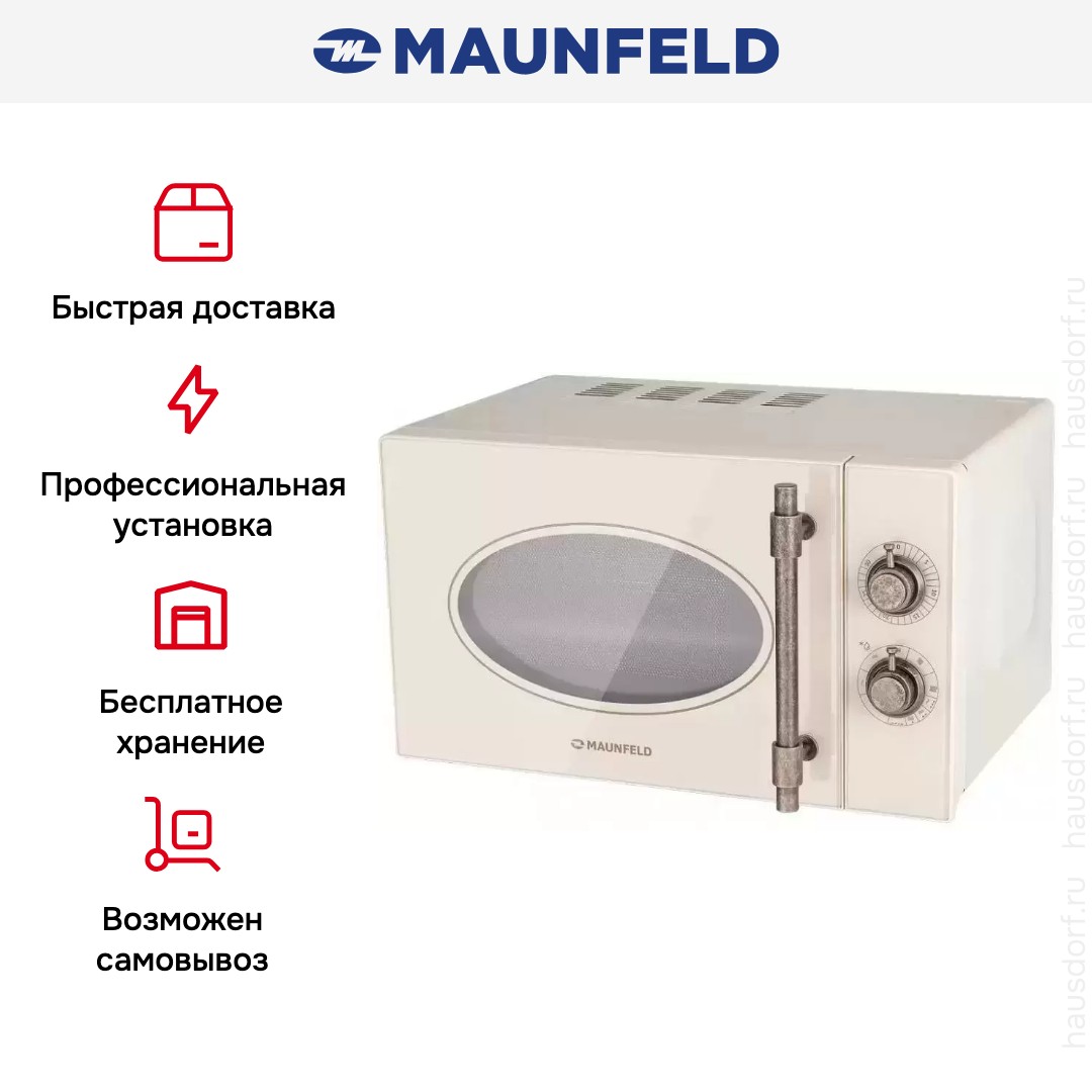 Микроволновая печь MAUNFELD JFSMO.20.5.GRIB будет прекрасно смотреться на любой кухне. Благодаря стильному дизайну (светлый корпус, эффектные ручки поворотных механизмов и т.д.) данная модель украсит собой классический или современный дизайн.