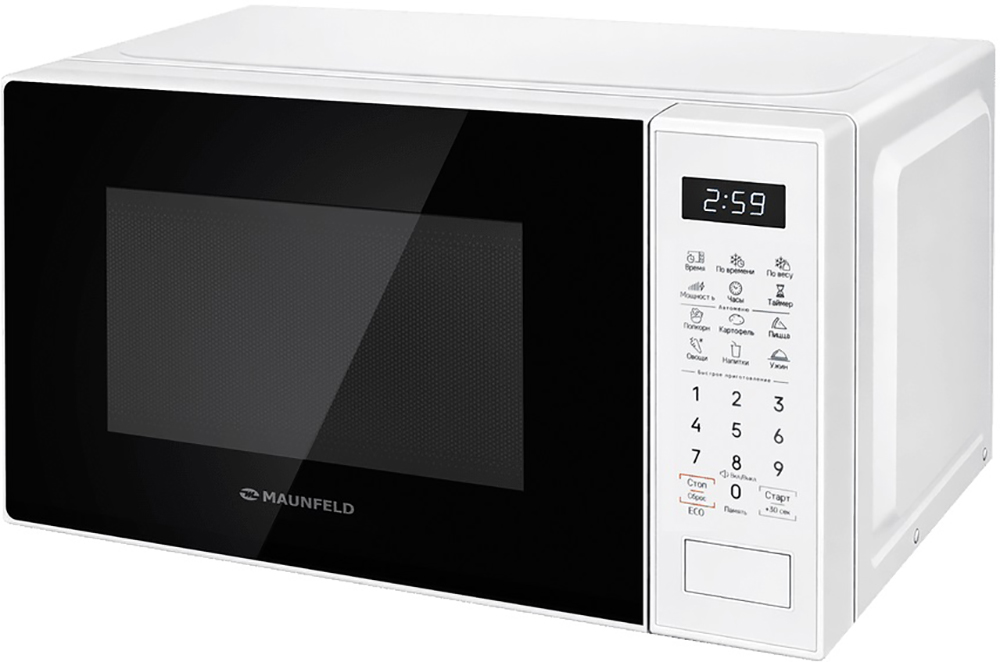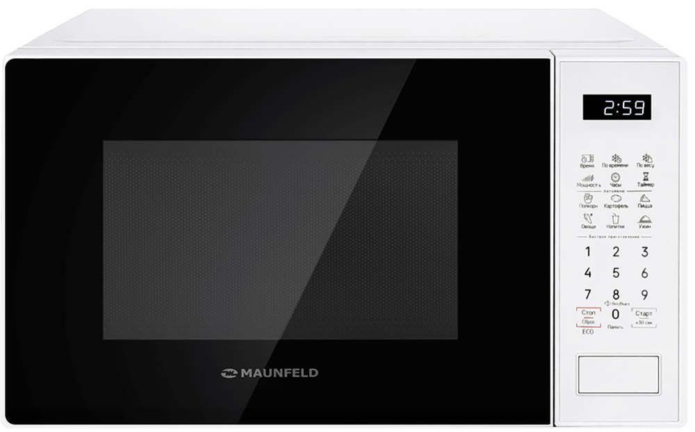 Отдельностоящая микроволновая печь Maunfeld MFSMO720EW02 — компактное и полезное дополнение к уже имеющейся кухонной технике. Ее можно установить на шкаф, на свободную столешницу, но не рекомендуется ставить на другие приборы, например, холодильник. Цвет этой модели: белый. Дизайн-линейка: Модерн, комбинируйте ее с другими приборами этой же серии.