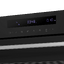 Лицевая часть прибора выдержана в тёмной гамме: корпус и фасад — глубокий чёрный, отделка оттенка чёрной стали, что придаёт ему сдержанную элегантность. Откидная дверца с ручкой и нижним упором выглядит монолитно, а стекло в дверце завершает образ. Внутренняя камера изготовлена из нержавеющей стали, при запуске включается подсветка, что облегчает контроль за процессом готовки.