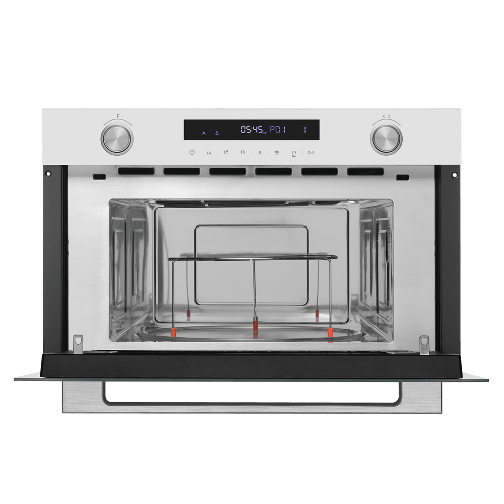 Микроволновые печи, как и другая бытовая техника, выпускаются в отдельно стоящем и встраиваемом варианте. Встраиваемые СВЧ-печи — вместительные устройства, которые можно отнести к премиальному сегменту. Они могут устанавливаться в колонну с другой бытовой техникой. Габаритные размеры встроенной печи позволяют монтировать ее в стандартную кухонную мебель. Изготовители предлагают модели в любом стиле — от хай-тек до классического и ретро. Подобные модели поддерживают несколько способов нагрева: кроме магнетрона, они могут оснащаться грилем разного типа, конвекцией и даже традиционным нагревом — такие СВЧ-печи по своим возможностям приближаются у духовке. Встроенная микроволновка подойдет для размещения в кухне любой площади, но стоимость ее может намного превышать стоимость отдельно стоящей модели.
