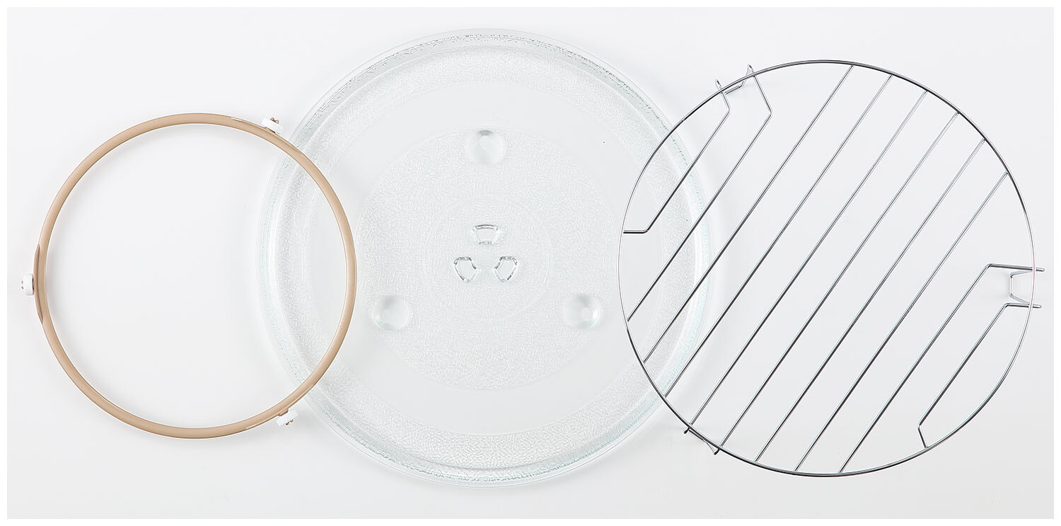 Материал внутренней поверхности — нержавеющая сталь. Благодаря ей хорошо аккумулируется и поддерживается тепло, прибор долго служит без повреждений. Полезный объем для готовки — 25 л. Для установки и прогрева посуды используется классическое вращающееся блюдо. В комплекте также есть решетка, с помощью которой можно разнообразить привычное меню. Понятное электронное управление не вызовет трудностей ни у кого из вашей семьи. Для изменения настроек или выбора программ используются следующие переключатели: сенсорные.