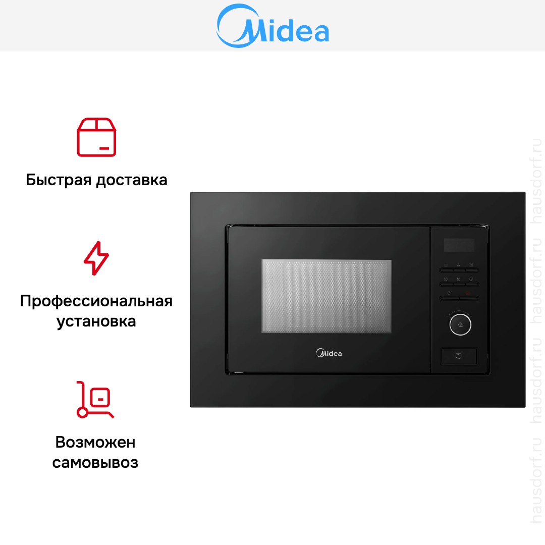 Встраиваемая микроволновая печь Midea MI72200B — прекрасное дополнение к уже имеющейся кухонной технике. Ее можно установить в колонну с духовым шкафом, пароваркой, кофемашиной. Цвет этой модели: черный. Количество стекол в двери: 2 шт. Благодаря этому микроволновое излучение не выходит наружу, а также не перегреваются внешние панели.