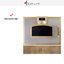 Гораздо шире выбор цветов у встраиваемых моделей. Большинство подобных микроволновок относится к премиум-сегменту, что предполагает большее разнообразие дизайна, тем более учитывается при этом только цвет фасада. Пребладают на рынке все те же модели белого и черного цветов, а также стальных и серебристых оттенков. Среди них можно выбрать микроволновки в современном и классическом стиле. Кроме них, можно выделить модели Teka и Zigmund Shtain из коллекции Кантри теплого оттенка ванили в сочетании с фурнитурой цвета состаренной бронзы. Интересны СВЧ-печи с фасадами сдержанных оттенков: серого с платиновым стеклом от V-ZUG, цвета серого камня от Teka, графитового серого от Miele. Яркие тона для этих микроволновок используются редко: среди них модели красного цвета Kuppersberg, медного от Korting, коричневого от Teka и Smeg.