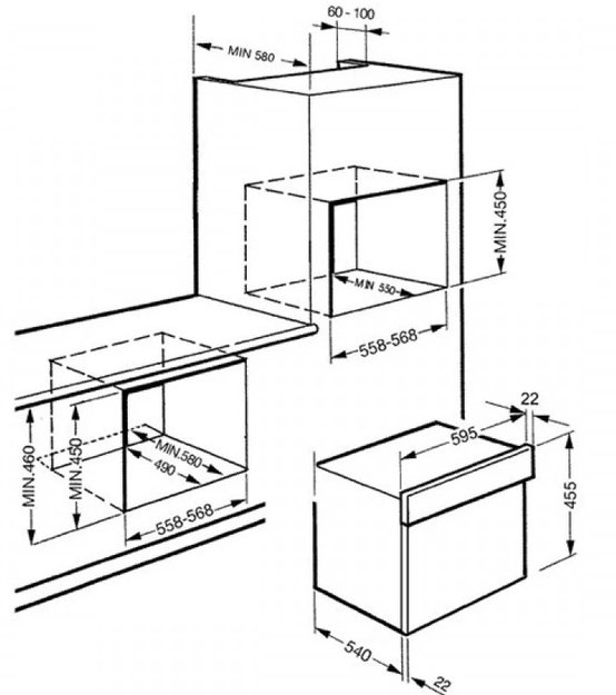 Глубина микроволновой печи —параметр, наиболее сильно влияющий на объем камеры и на диаметр вращающегося стеклянного блюда. Отдельно стоящие микроволновки соло, а также приборы, оснащенные грилем, имеют глубину от 35 до 45 см. При их установке на столешнице следует учитывать, в какую сторону и насколько широко будет открываться дверца. Глубина микроволновки, которая встраивается в кухонную мебель, также варьируется в широком диапазоне. Для полноразмерных моделей с откидной или навесной дверцей она может составить около 52-55 см, а для менее вместительных приборов — порядка 32-35 см.