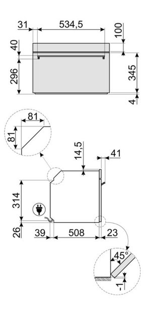 Глубина микроволновой печи —параметр, наиболее сильно влияющий на объем камеры и на диаметр вращающегося стеклянного блюда. Отдельно стоящие микроволновки соло, а также приборы, оснащенные грилем, имеют глубину от 35 до 45 см. При их установке на столешнице следует учитывать, в какую сторону и насколько широко будет открываться дверца. Глубина микроволновки, которая встраивается в кухонную мебель, также варьируется в широком диапазоне. Для полноразмерных моделей с откидной или навесной дверцей она может составить около 52-55 см, а для менее вместительных приборов — порядка 32-35 см.