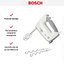 Обратите внимание на цвет миксера Бош — белый — он может стать как гармоничным дополнением кухонной обстановки, так и ярким акцентом. В комплекте с самим прибором идут дополнительные элементы: венчик для взбивания, крюки для теста.
