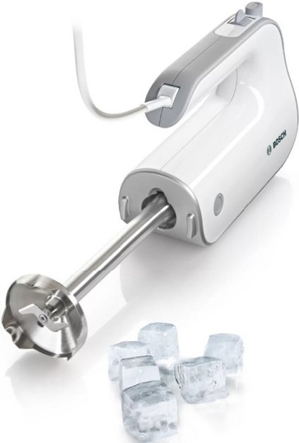 Обратите внимание на цвет миксера Бош — белый — он может стать как гармоничным дополнением кухонной обстановки, так и ярким акцентом. В комплекте с самим прибором идут дополнительные элементы: венчик для взбивания, крюки для теста, мерный стакан с крышкой, насадка-блендер.