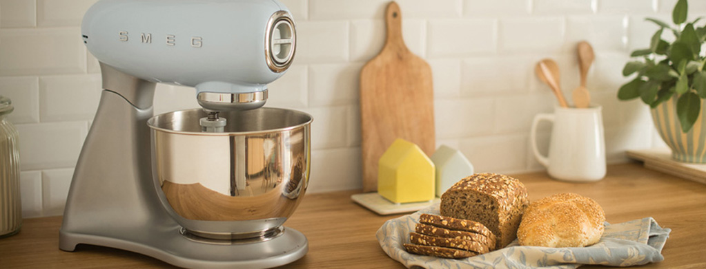 Стационарный миксер — настольный прибор, который служит для приготовления смесей, в том числе достаточно густых, замешивания теста, взбивания продуктов. В отличие от блендера, он не способен измельчать продукты. В состав миксера входит корпус-подставка с двигателем внутри, чаша из нержавеющей стали и головка, на которой крепятся венчики и крюки. На корпусе находится панель управления, которая позволяет выбрать скорость и режим вращения, а также автоматическую программу. При включении прибора вращаются не только насадки, но сама чаша, что позволяет получить однородную смесь.