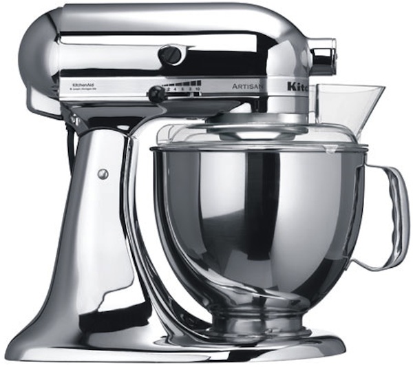Обратите внимание на цвет миксера Китчен Эйд — хром — он может стать как гармоничным дополнением кухонной обстановки, так и ярким акцентом. В комплекте с самим прибором идут дополнительные элементы: венчик для взбивания, защитная крышка на чашу, защитный обод с воронкой для засыпания продуктов, крюки для теста, насадка-лопатка для перемешивания. Вы можете приобрести и установить другие насадки, для них создано специальное гнездо. Также производитель предусмотрел вариант расширения функционала до кухонного комбайна.