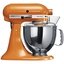 Обратите внимание на цвет миксера Китчен Эйд — мандарин — он может стать как гармоничным дополнением кухонной обстановки, так и ярким акцентом. В комплекте с самим прибором идут дополнительные элементы: венчик для взбивания, защитная крышка на чашу, защитный обод с воронкой для засыпания продуктов, крюки для теста, насадка-лопатка для перемешивания. Вы можете приобрести и установить другие насадки, для них создано специальное гнездо. Также производитель предусмотрел вариант расширения функционала до кухонного комбайна.