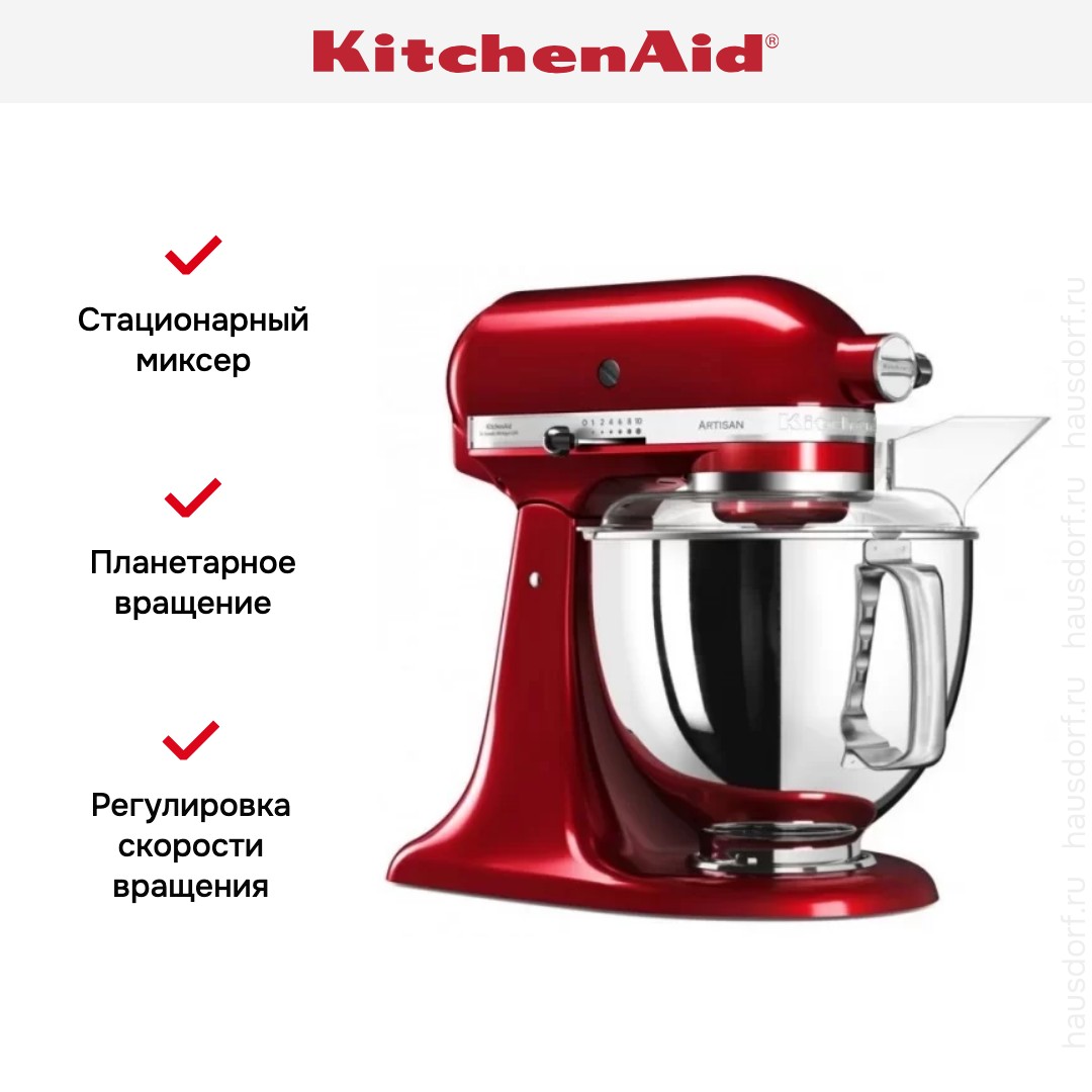 Планетарный миксер Artisan от KitchenAid — функциональный и стильный помощник на вашей кухне. Метод планетарного смешивания — это быстрое и тщательное перемешивание. Конструкция прямого привода обеспечивает тихую, надежную и долговечную работу, а цельнометаллическая конструкция с эмалевым покрытием придает внешнему виду изящности.
