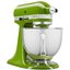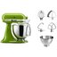 Обратите внимание на цвет миксера Китчен Эйд — матча — он может стать как гармоничным дополнением кухонной обстановки, так и ярким акцентом. В комплекте с самим прибором идут дополнительные элементы: венчик для взбивания, крюки для теста, насадка-лопатка для перемешивания, защитный обод, стальная чаша объемом 3 л, лопатка с гибким ребром.