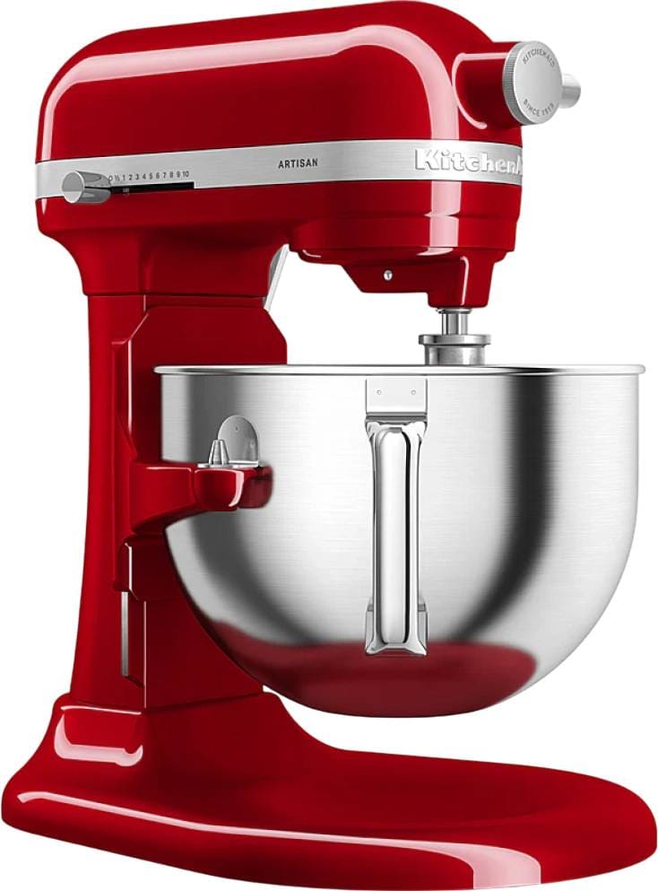 Обратите внимание на цвет миксера Китчен Эйд — красный — он может стать как гармоничным дополнением кухонной обстановки, так и ярким акцентом. В комплекте с самим прибором идут дополнительные элементы: венчик для взбивания, крюки для теста, насадка-лопатка для перемешивания, защитный обод. Также производитель предусмотрел вариант расширения функционала до кухонного комбайна.
