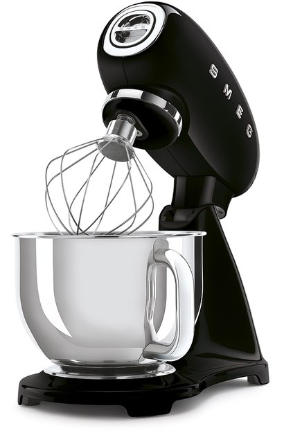Smeg SMF03BLEU — стационарный миксер линейки «Стиль 50-х» от компании Smeg. Это стильная, мощная и функциональная машина итальянского производства станет украшением вашей кухни. Благодаря элегантному облику она впишется в любой кухонный интерьер от классики до современных направлений, вроде хай-тека, лофта и даже таких стилей, как скандинавия и прованс. Цвет миксера — черный, корпус изготовлен из высокопрочного литого алюминия. Нескользящие ножки создают дополнительный комфорт и надежность установки во время работы миксера.
