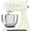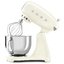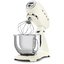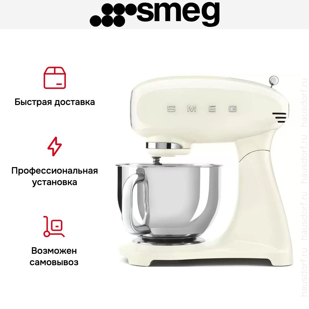 Миксер Smeg SMF03CREU — полностью окрашенная модель планетарного миксера теплого кремового оттенка. Уже успевший стать культовым дизайн вдохновлен эстетикой 50-х с ее мягкими формами, глянцевыми поверхностями и яркими металлическими акцентами. Инновационный подход дизайнеров Smeg изменил подход к производству бытовой техники, превратив ее в элемент дизайна. Бытовой прибор как будто смотрит на вас с открытки середины прошлого века или старого голливудского фильма, придавая интерьеру кухни атмосферу изящности и винтажности. Кремовый оттенок лучше всего сочетается с пастельными цветами и светлым оформлением кухни в целом. Корпус миксера изготовлен из литого алюминия, надежного и крепкого материала, который по весу значительно тяжелее обычного алюминия. Для настольных приборов устойчивость — очень важный фактор. Литой алюминий будет поглощать вибрацию и поможет вашему устройству работать без перебоев в течение долгого времени. Технология планетарного вращения максимально оптимизирует процесс смешивания продуктов разной консистенции, увеличивает скорость готовки. Несколько видов насадок поставляются в комплекте, если же вы хотите использовать другие аксессуары для улучшения функциональность миксера, вы можете использовать фронтальный порт для дополнительных насадок. Особенности модели: нескользящие ножки, низкая скорость на выходе, регулировка скорости вращения.