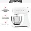 Миксер Smeg SMF03WHEU — стационарная модель с планетарным вращением в корпусе белого цвета. При запуске вращается не только насадка, но и головка, в которой она крепится. Такое вращение позволяет захватывать весь объем чаши. Прибор мощностью 800 Вт с 4 насадками и чашей объемом 4,8 литра из нержавеющей стали позволяет готовить тесто любой плотности, смешивать и взбивать. Имеется гнездо для установки дополнительных насадок. При поднятой головке работа миксера Смег SMF03WHEU автоматически прекращается.