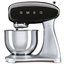 Обратите внимание на цвет миксера Смег — черный — он может стать как гармоничным дополнением кухонной обстановки, так и ярким акцентом. В комплекте с самим прибором идут дополнительные элементы: венчик для взбивания, защитная крышка на чашу, крюки для теста.