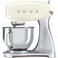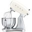 Планетарный миксер Smeg SMF02CREU кремового цвета из линейки 50-х годов подойдет не только пастельному кухонному ретро-дизайну — устройство в таком оттенке будет прекрасно смотреться в традиционных и современных интерьерах. Идеальное сочетание винтажной эстетики и функциональности было достигнуто благодаря использованию необычных материалов и современных технологий. Процесс приготовления пищи станет приятным и быстрым благодаря надежному и эффективному помощнику. 10 регулируемых уровней скорости позволяют настроить его так, как вам необходимо, плавный старт позволяет машине начать работу мягко и постепенно, а планетарное вращение помогает насадкам захватывать поверхность чаши полностью, делая процесс перемешивания ингредиентов практически совершенным. В комплекте есть базовые насадки: крюк для теста, насадка для плотных продуктов, венчик для взбивания легких или жидких продуктов. При необходимости вы можете усовершенствовать возможности вашего устройства дополнительными насадками различного функционала, которые приобретаются отдельно. Если вы часто занимаетесь кулинарией, то также рекомендуем вам купить дополнительную чашу, чтобы при приготовлении сложных рецептов вам не приходилось тратить лишнее время на то, чтобы освободить уже занятую тару или подготовить ее к повторному использованию. Особенности модели: аксессуары из нержавеющей стали и алюминия, чаша объемом 4,8 л, порт для дополнительных насадок.
