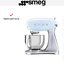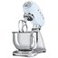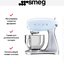 Планетарный миксер Smeg SMF02PBEU — модель пастельно-голубого цвета из коллекции в стиле 50-х годов. Светлый, практически невесомый оттенок напоминает об утреннем небе летом, свежести морской воды, спокойствии и медленном течении времени. Металлические детали придают атмосферу хай-тека, делая ваш миксер похожим на космический прибор из далекого будущего. Внутреннее наполнение устройства нисколько не уступает высоким стандартам, которые задает его эстетика. Мощный двигатель с прямым приводом, устойчивый корпус, инновационная технология вращения — все это делает данную модель идеальным выбором для вашей кухни. С помощью различных насадок, которые идут в комплекте с миксером, вы сможете замешивать легкие (жидкие) и плотные продукты, а также готовить тесто. В базовой комплектации для этого есть металлические венчики и крюк. Особенности модели: 10 ступеней скорости, чаша объемом 4,8 л, порт для дополнительных насадок.