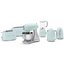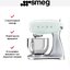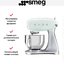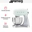Планетарный миксер Smeg SMF02PGEU пастельного зеленого цвета в стиле 50-х годов подойдет и ретро-кухне, и современной. Мягкий, неформальный оттенок зеленого оказывает расслабляющий эффект в сочетании со светлыми оттенками интерьера и превращается в необычный цветовой акцент в темных, классических интерьерах. Этот цвет несет в себе как традиционную эстетику пятидесятых, уют и легкость, так и свежесть новизны при правильном использовании. При взгляде на этот оттенок появляются приятные ассоциации с летом, листьями мяты, свежими овощами. Данная модель — лучший выбор для тех, кто предпочитает спокойствие, равновесие во всем, включая дизайн кухонного интерьера. Планетарный миксер — устройство, которое освободит вас от монотонной ручной работы и помогут сэкономить много времени в самом процессе готовки. С его помощью можно выполнять различные кухонные операции, а если вы приобретете дополнительные насадки, например, мясорубку или насадку для нарезки спагетти, возможности миксера станут практически безграничны. Конструкция специально разработана для максимально эффективного использования. Благодаря нескользящим ножкам и материалу корпуса, устройство надежно и устойчиво. В комплекте есть металлические насадки — венчик для взбивания и крюк для теста — можно смешивать легкие продукты (например, сливки) и плотные. На корпусе есть порт для дополнительных насадок. Особенности модели: плавный старт вращения, регулировка скорости — 10 ступеней, блокировка вращения при поднятой смесительной головке.