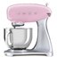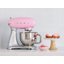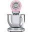 Планетарный миксер Smeg SMF02PKEU нежного розового цвета из коллекции 50-х годов подойдет и ретро-кухне, и современной. Теплый и аккуратный оттенок интересно контрастирует с холодными серебристыми элементами из хрома. Металлический корпус будто обрамляет мягкость и беззаботность розового, создавая ощущение изящности и технологичности одновременно. Такое сочетание будет выгодно смотреться в любом интерьере, особенно хорошо применимо для кухонь. Розовый значительно менее агрессивный, чем красный, что не мешает ему оставаться насыщенным и по-своему ярким. Кроме этого, этот цвет повышает аппетит и успокаивает. Данная модель подойдет тем, кто любит проводить на кухне много времени и оригинальные интерьерные решения. Устройство выделяется на фоне моделей миксеров других производителей не только цветом, но еще и изогнутыми формами, винтажными ручками и рычагами. Если вы часто готовите, то миксер наверняка присоединится к вам в роли главного героя вашей кухни. Прибор значительно облегчает бытовые операции, незаменим в кулинарии и выпечке. Если для вас важна эстетика, соседствующая с высокой производительностью и простотой в управлении — эта модель совмещает в себе все эти качества. С помощью насадок, идущих в комплекте, вы сможете смешивать легкие и жидкие текстуры, плотные продукты и даже готовить тесто с помощью специального крюка. Все насадки изготовлены из качественного металла и долговечны. Особенности модели: плавный старт вращения, вместительная чаша с крышкой, блокировка вращения при поднятой смесительной головке.