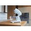 Планетарный миксер Smeg SMF13WHEU — уникальная модель в коллекции 50’s style от Smeg. Ретро-линейка продуктов в стиле 50-х ярко выделяется на общем фоне другой бытовой техники безупречно отточенным винтажным дизайном, под которым прячутся современные технологии. Данная модель выгодно отличается от всей остальной линейки тем, что не использует свойственные той эпохи яркие цветы, взамен выделяясь полностью белым корпусом, изготовленным из литого алюминия. Миксер смотрится необычно, свежо, волнообразные линии и гладкие формы конструкции добавляют еще больше легкости и изысканности. Но все же главное преимущество именно этой модели чаша из закаленного стекла вместо нержавеющей стали. Прозрачная матовая чаша, хоть и будет более хрупкой, имеет очень важные достоинства по сравнению с металлической. Во время готовки вы всегда будете видеть, что происходит внутри чаши. Отметки на поверхности позволят смешивать ингредиенты, не используя дополнительной посуды. Также материал, из которого изготовлена чаша, является стойким к разным температурам — ее можно ставить в микроволновую печь или хранить в холодильнике. В базовой комплектации есть насадки, которые взбивают плотные и легкие продукты, замешивают тесто. Устройство работает на 10 скоростях, которые регулируются с плавным стартом. Специальный механизм блокирует вращение при поднятой смесительной головке, поэтому безопасен даже для начинающих кулинаров. Особенности модели: низкая скорость на выходе, 3 насадки в комплекте, нескользящие ножки.