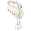 Ручной миксер Smeg HMF01CREU из известной коллекции в стиле 50-х годов — компактный и легкий прибор весом 1,15 кг, позволяющий замешивать тесто, готовить соусы, взбивать белки и сливки. Миксер в корпусе кремового цвета с рифленой нескользящей ручкой изготовлен из специального пластика ABS, выдерживающего высокие нагрузки. На ручке расположены кнопки переключения скоростей. В комплект миксера Смег HMF01CREU входят 6 насадок, включая венчик для взбивания и крюки для теста, и чехол для их хранения.
