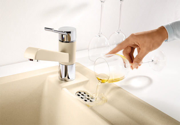 Мойки из искусственного камня выпускаются обычно в пастельных тонах, которые получают благодаря добавлению специальных пигментов. Количество оттенков у них очень велико — от белого, жемчужного, беж, цветов ванили, пастилы, корицы до тонов графит, антрацит и базальт, а также универсального черного. Эти оттенки отличаются высокой стойкостью, не линяют и не выцветают. Менее востребованы цветные мойки, однако по качеству они не уступают изделиям нейтральных оттенков.