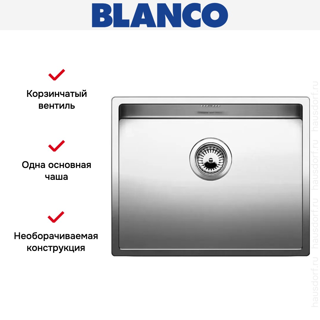 Обратите внимание на дизайнерские отличия мойки Бланко, которые помогут в создании идеальной кухни в вашем доме. Она выполнена в цвете нержавеющая сталь. Основной материал — нержавеющая сталь, он гарантирует надежность и долгие годы службы без повреждений. У этого покрытия приятная полированная текстура.