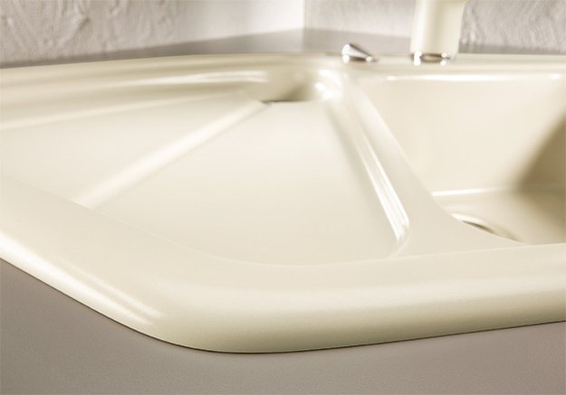 Модель DELTA сочетает функциональность и эстетику угловой мойки. Основная чаша имеет трапециевидную форму. Крыло немного углублено, что позволяет использовать его в качестве дополнительной рабочей зоной. Коландер из нержавеющей стали повторяет форму чаши и служит для мытья и сушки овощей и фруктов. Рельефное крыло оборудовано дополнительным сливом для эффективного удаления излишков жидкости. Закругленные углы упрощают очистку труднодоступных мест.