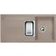 Оборачиваемая модель оборудована дополнительной чашей и коландером из нержавеющей стали. Аксессуар повторяет форму чаши и необходим для мытья столовых приборов или фруктов. Излишки воды стекают через специальные отверстия. В комплект входят также отводная арматура с клапаном-автоматом для основной чаши, позволяющая удобно сливать воду, и корзинчатый вентиль для дополнительной чаши, предупреждающий появление засоров. Большое крыло — дополнительная рабочая зона. Материал Silgranit устойчив к появлению царапин и сколов, легко очищается и является безопасным для продуктов питания.