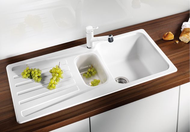 Мойка NOVA 6S — элегантное и функциональное решение от Blanco. Практичное ребристое крыло увеличивает рабочую поверхность. Дополнительная чаша подходит для отдельного мытья фруктов, овощей или размораживания. В таком случае остатки моющего средства из основной чаши не попадают на продукты. Приятная на ощупь поверхность устойчива к перепадам температур, царапающему воздействию и выцветанию.