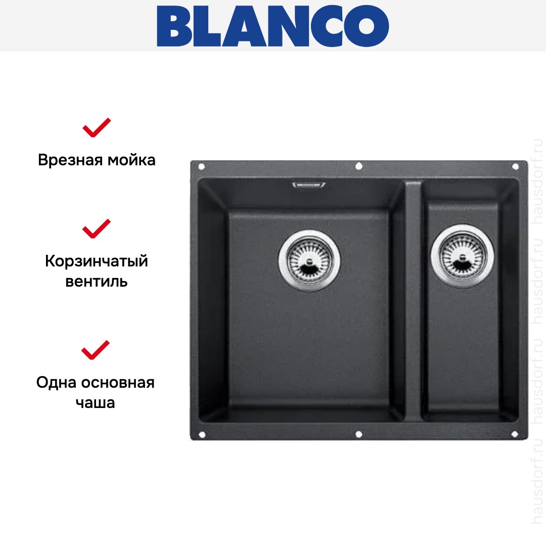 Врезная мойка Blanco — отличный выбор для тех, кто хочет создать гармоничное кухонное пространство с полностью вписывающейся в него сантехникой. Преимущество такой конструкции — плотное прилегание к столешнице, так как вырез подбирается индивидуально под габариты модели. Под стыки не попадает вода, поэтому срок службы значительно увеличивается, пользоваться ей удобно и приятно. Данная модель имеет стандартную форму, поэтому подходит большинству пользователей. Устанавливается под столешницу, благодаря чему не остается стыков, в которых копились бы загрязнения, а также увеличивается рабочая глубина.