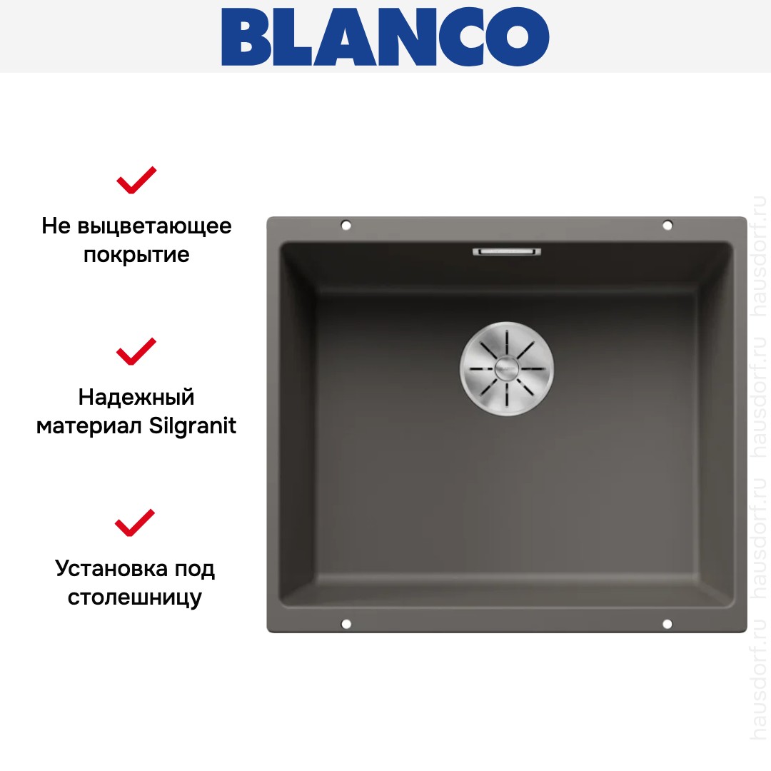 Мойка BLANCO SUBLINE 500-U Silgranit вулканический серый